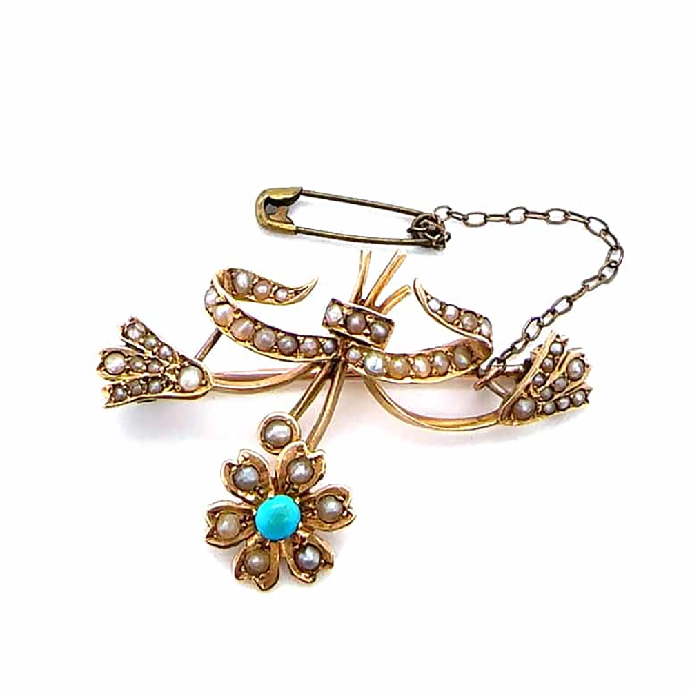 15ct turquoise and pearl brooch c.1900
