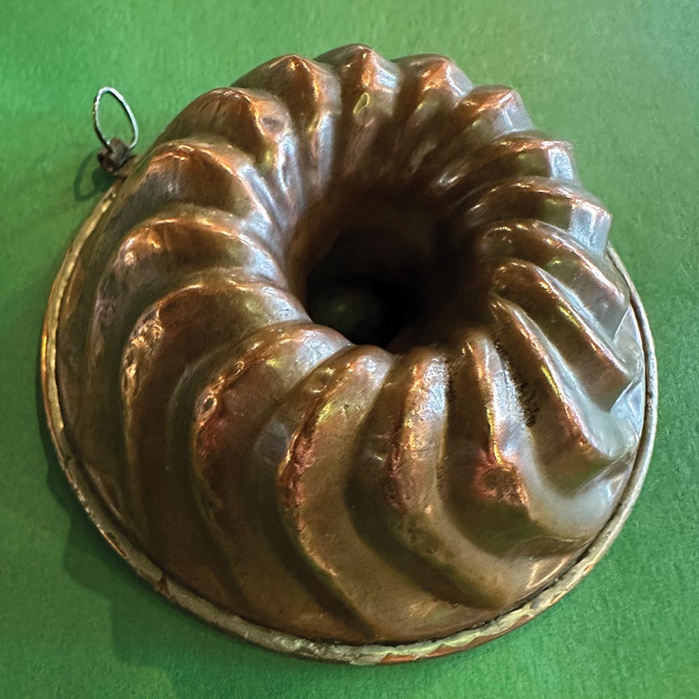 An antique copper miniature Bundt pan.