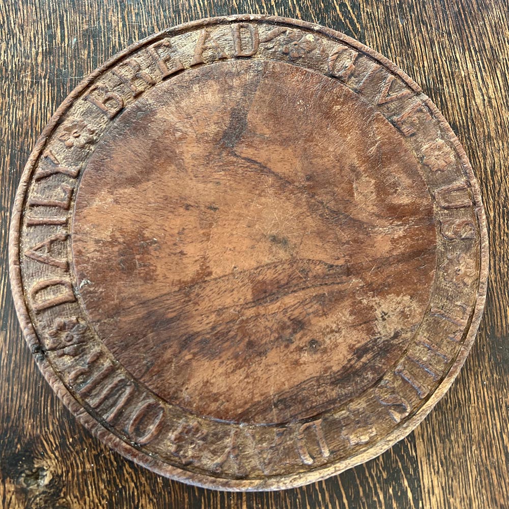 Carving reads: ‘Give Us This Day Our Daily Bread.’