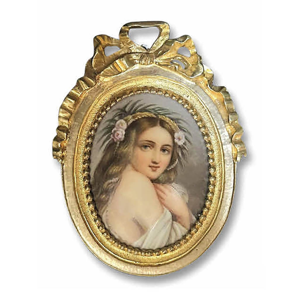 This beautiful hand painted miniature portrait was crafted in France during the 19th century.