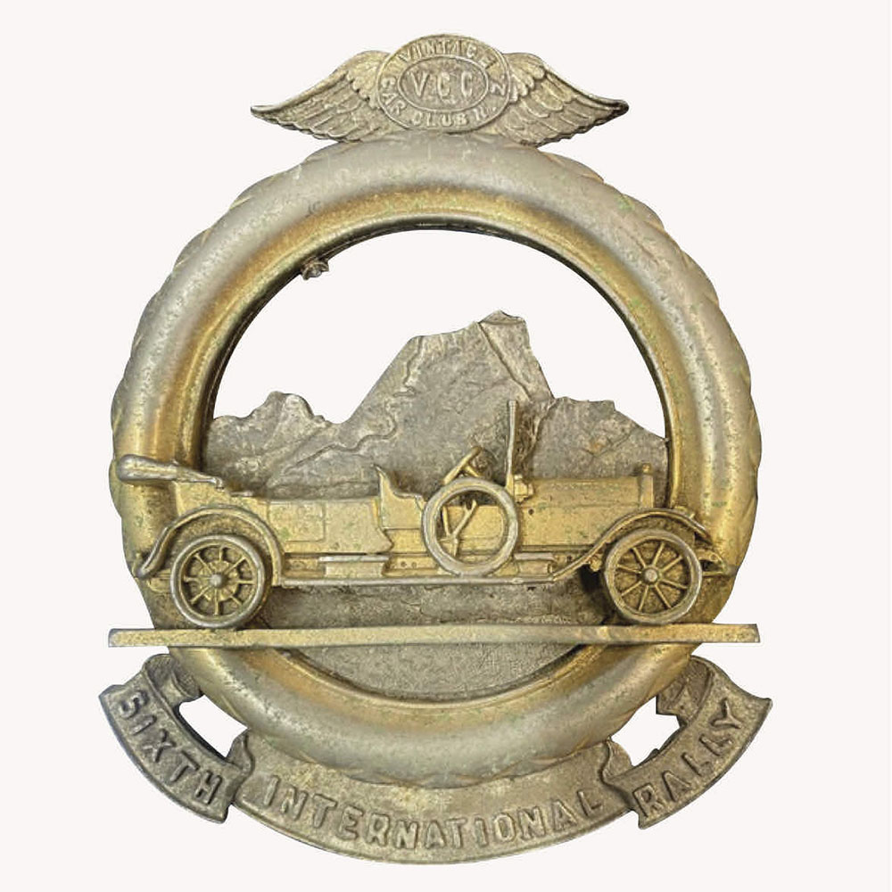 This is the car badge for the Vintage Car Club NZ issued for the 6th International Rally held in Christchurch, New Zealand, March 6 to 19, 1965.
