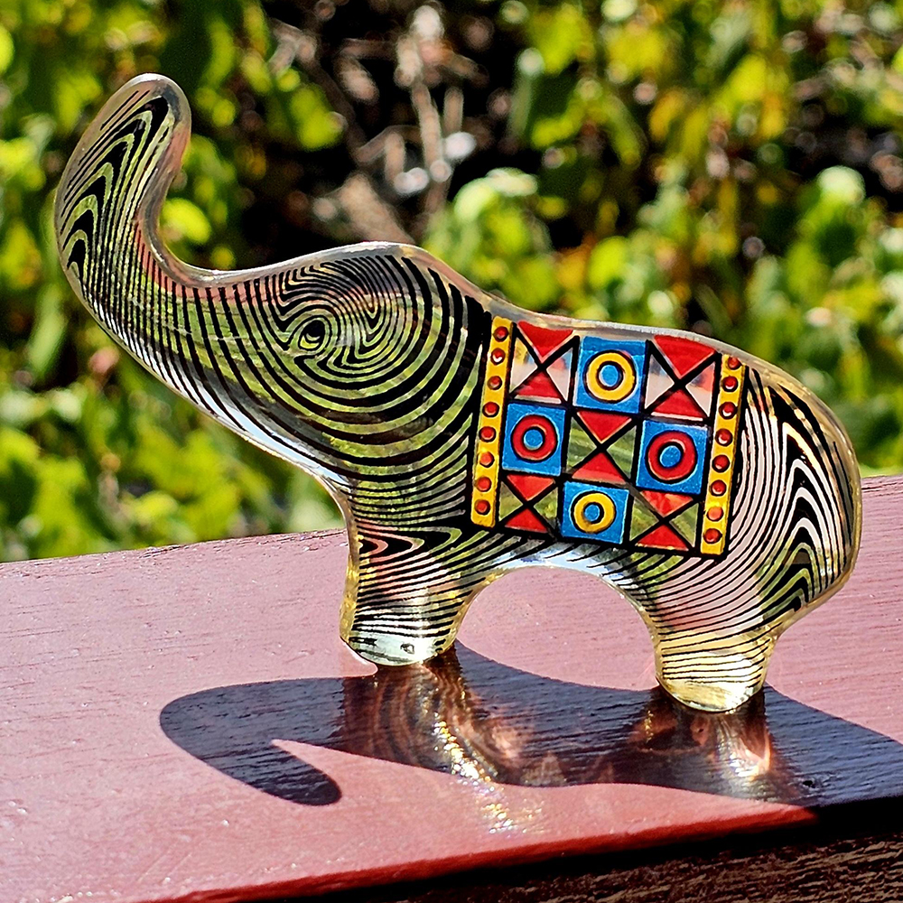 This Lucite Elephant figurine is by Brazilian artist Abraham Palatnik (1929-2020). Famed for his kinetic and optical art, he worked most of his life in Rio de Janeiro.