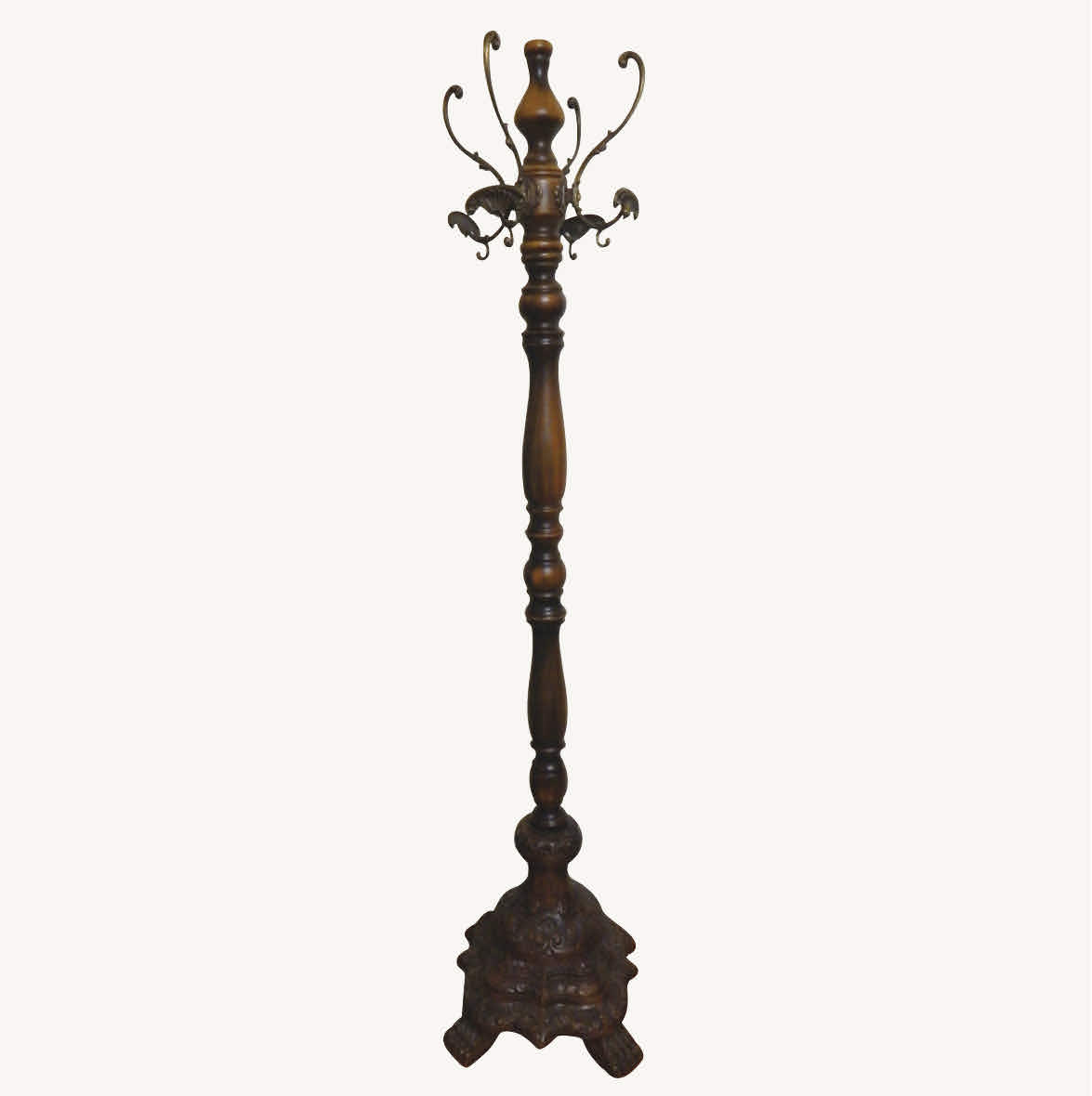 This ornately carved and heavy hat stand is not very old but has excellent style and practicality.