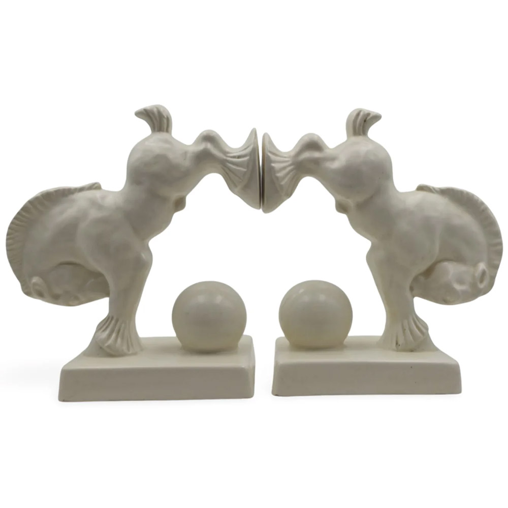 This pair of Spode Art Deco bookends with a creamy matt glaze were part of the new Velamour range introduced in 1932.