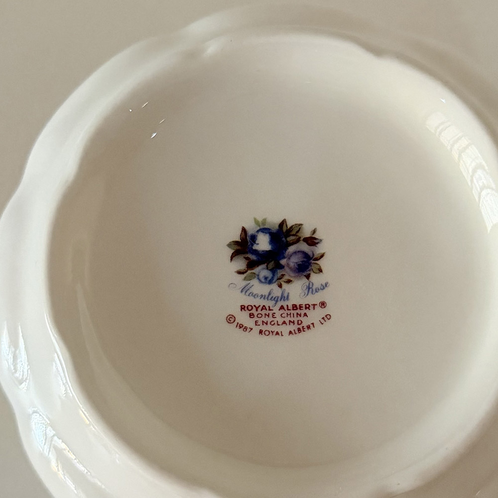 Made in England and measuring 11cm in height, this lovely Royal Albert Moonlight Rose lidded and handled sugar bowl is in great condition, free from any chips, cracks or restorations.