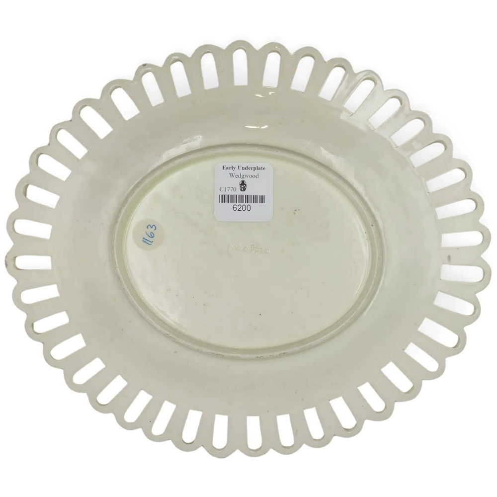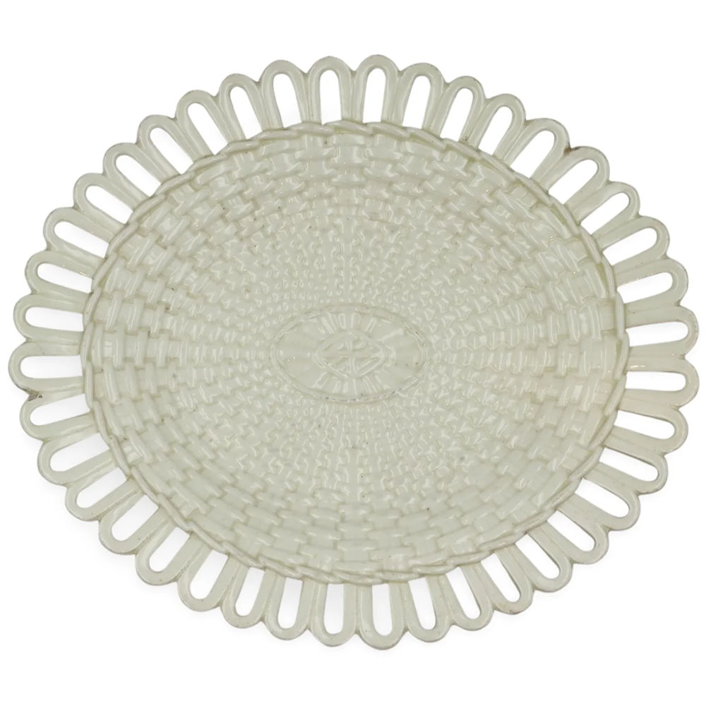 Wedgwood tray with reticulated edge and moulded basket-weave decoration. Mixed-case mark, c.1770.