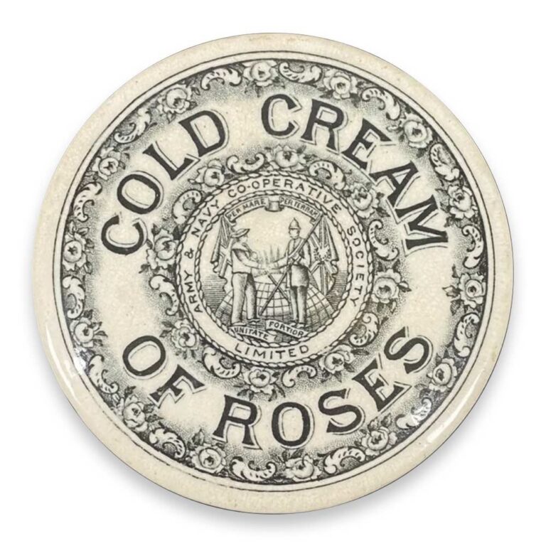 This Army & Navy Cooperative Society Ltd. transferware is in unusually good condition, diameter 8.5cm.