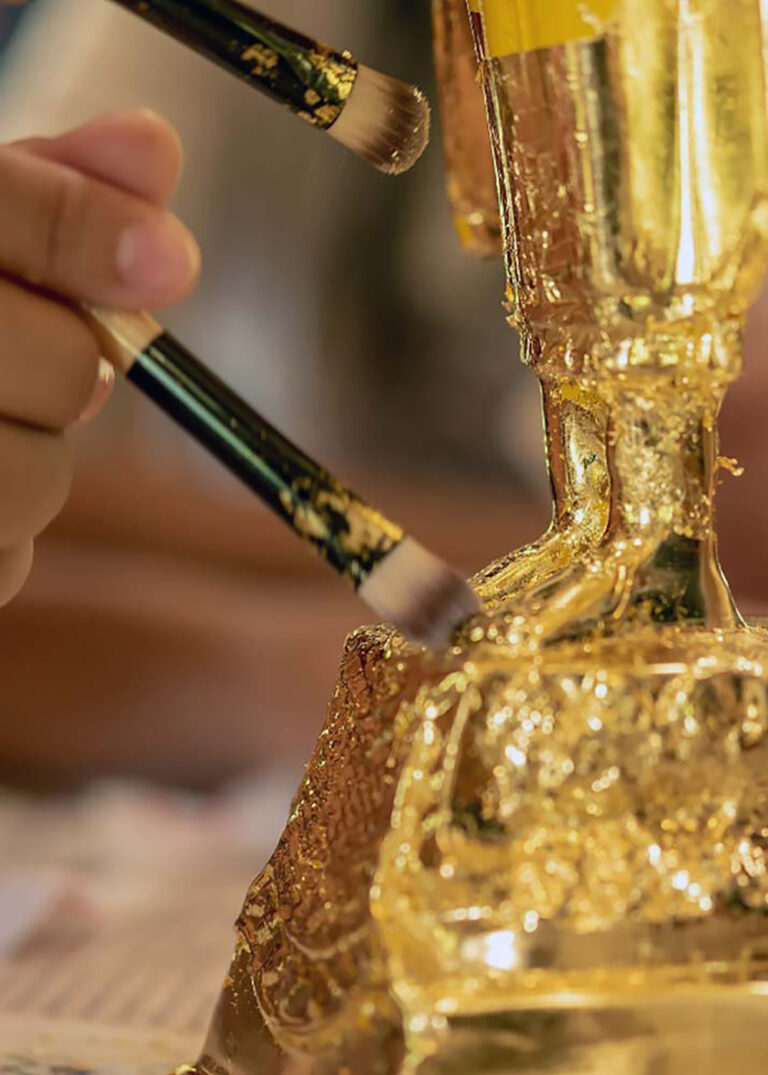 Gilding is a skilled craft, and in the hands of a master craftsman provides not only a highly decorative finish that can highlight intricate details, but also when used on a larger scale – and we’re talking very large – bring life to whole buildings.