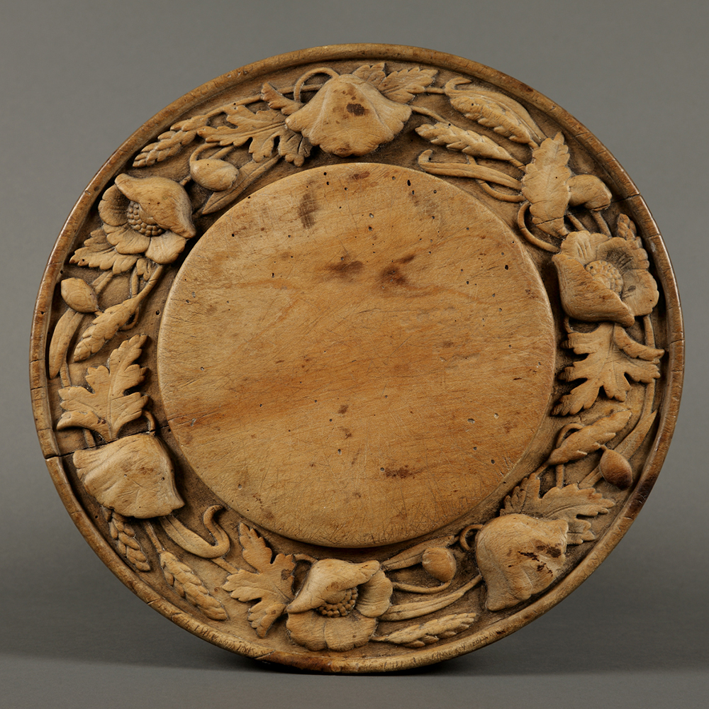 When people started to cut directly on their bread platters, damaging the carving, the wood artists adapted the design; they raised the central roundel and lowered the decorative border, thus protecting the carving. This was the birth of the quintessential British breadboard, the inverse of a European sharing platter.