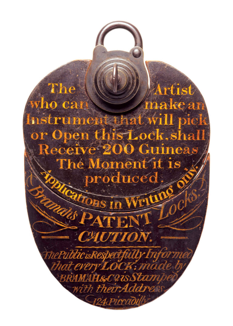 Bramah and his chief engineer, Henry Maudslay, had undertaken to make a padlock so secure that it could only be opened by its own dedicated key. They placed their mounted Challenge Lock in the window of their London shop and issued the following challenge: ‘The artist who can make an instrument that will pick or open this lock shall receive 200 Guineas the moment it is produced.’